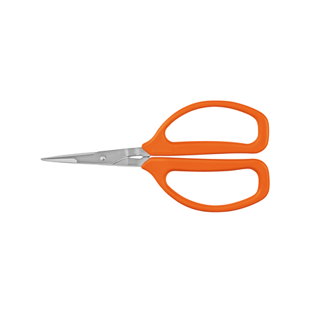 Tijera de láminas de acero inoxidable para cosechar frutos de forma profesional, sin perjudicar la planta, o para raleo de frutas. Es anatómica, muy resistente y tiene una excelente lámina. Una herramienta versátil que se puede utilizar hasta en la poda de bonsais.